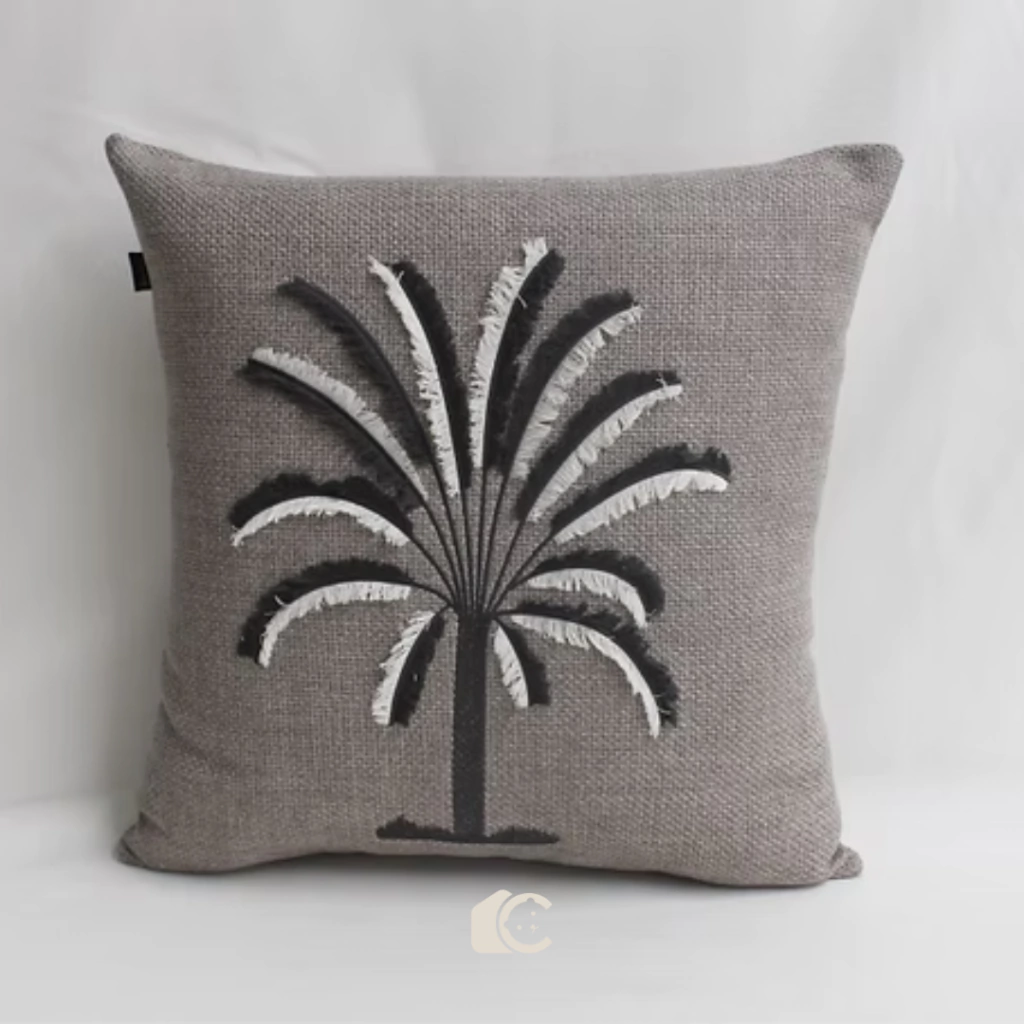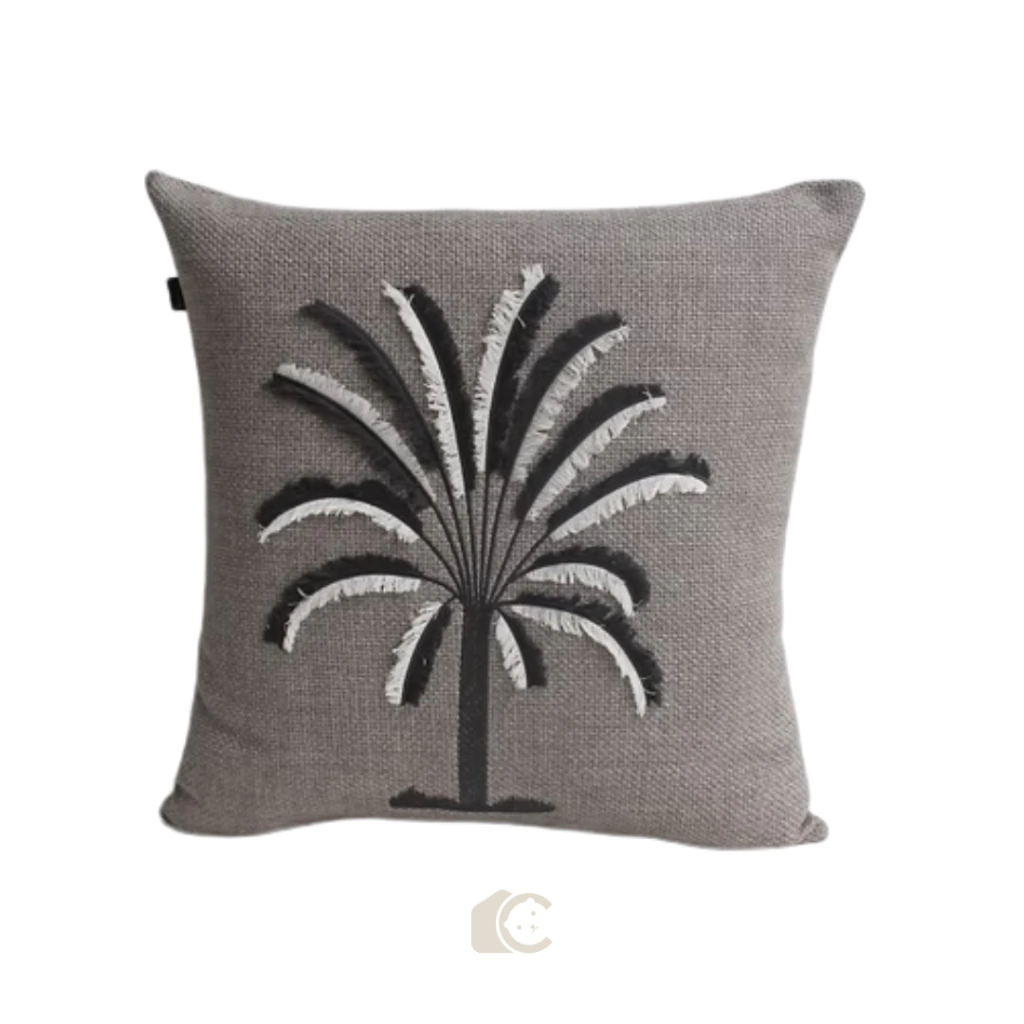 A Almofada Alaska Gray Palm combina o charme tropical ao requinte do bordado manual. Com uma palmeira delicadamente bordada à mão sobre fundo cinza, é perfeita para compor ambientes elegantes e acolhedores, trazendo um toque natural e sofisticado à decoração.