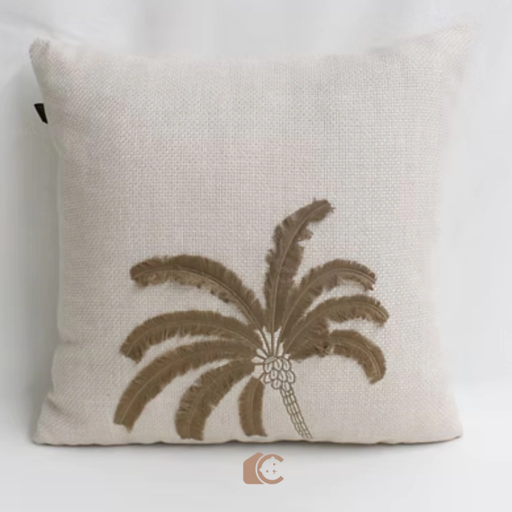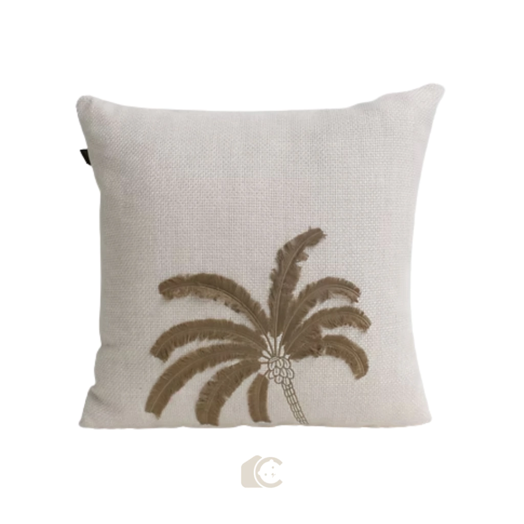 A Almofada Alaska Palm traz o frescor e a elegância do estilo tropical para a decoração. Com estampa de palmeira bordada à mão, adiciona textura, sofisticação e um toque natural ao ambiente, criando composições que unem leveza e personalidade.