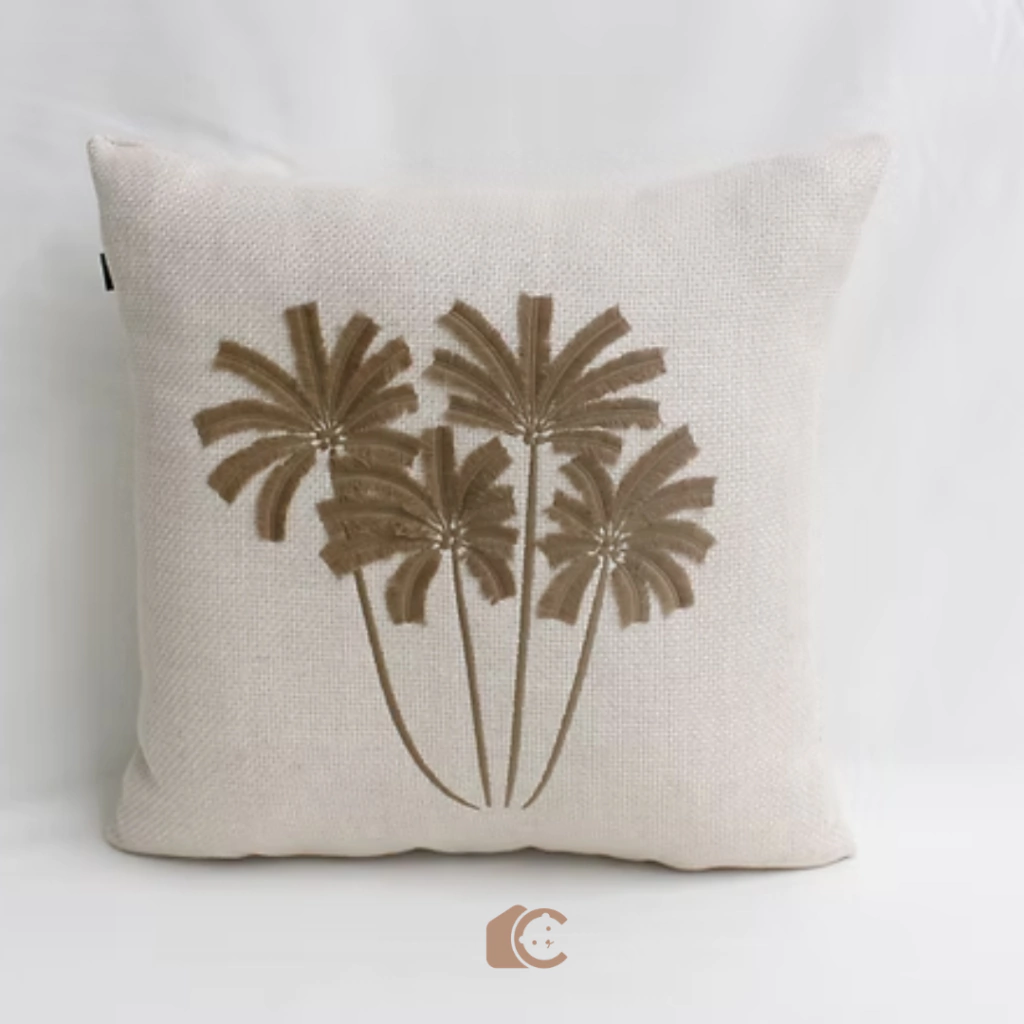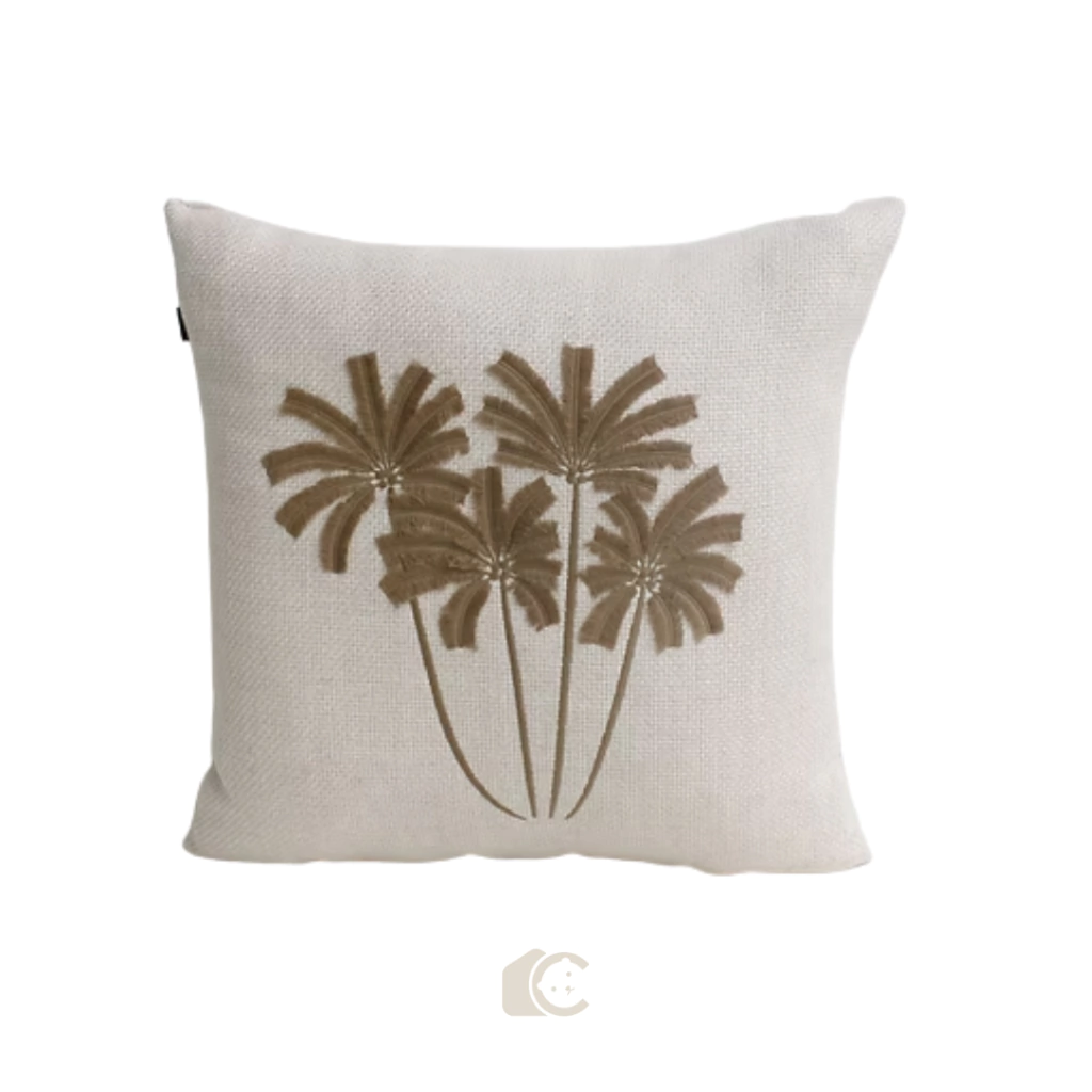 A Almofada Alaska Palm Springs combina o charme tropical ao requinte do bordado manual. Com quatro palmeiras delicadamente bordadas à mão, traz um toque sofisticado e descontraído para a decoração, remetendo ao clima ensolarado e elegante da icônica cidade californiana.