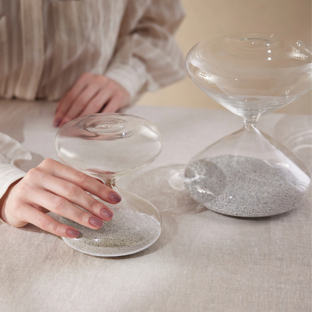Design elegante para marcar o tempo com estilo. A Ampulheta com Esferas Prata é uma peça que une funcionalidade e sofisticação em um objeto decorativo atemporal. Com estrutura em vidro transparente e base decorada com esferas metálicas prateadas, ela adiciona um toque moderno e refinado a escritórios, estantes ou mesas de centro.