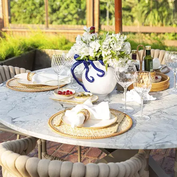 Versátil e elegante, combina com guardanapos lisos ou estampados, harmonizando perfeitamente com decorações em tons neutros, fibras naturais e louças descontraídas, oferecendo um toque rústico-chique para qualquer ocasião.