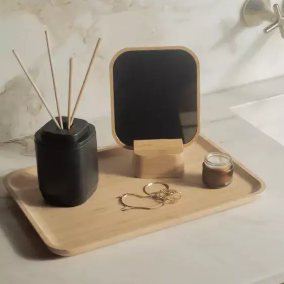A Bandeja Organizadora da Linha Aura é perfeita para manter seus itens sempre em ordem com praticidade e estilo. Produzida em bambu, um material sustentável e durável, une funcionalidade ao design atemporal, valorizando qualquer ambiente.