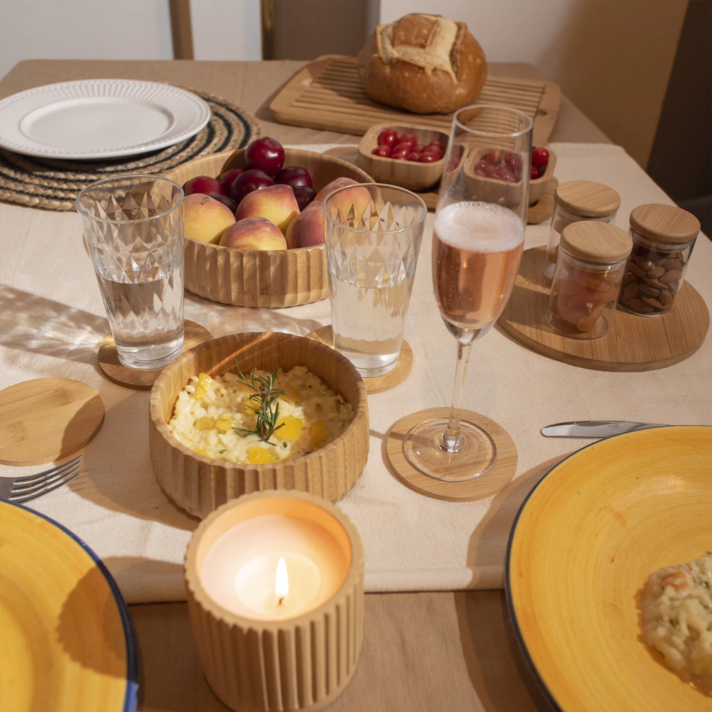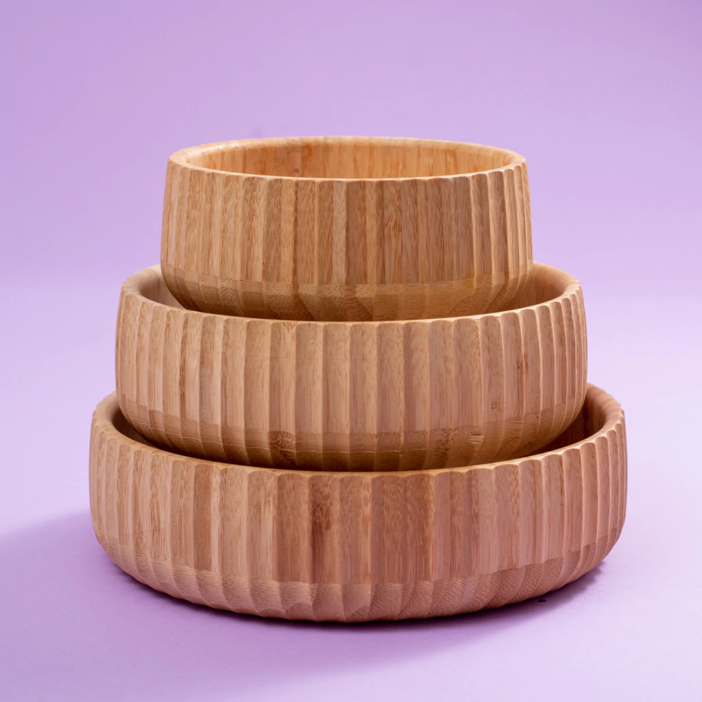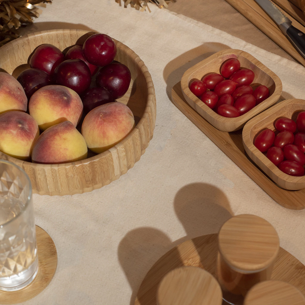 Com acabamento canelado e textura natural, este bowl é perfeito para servir saladas, frutas, pães ou compor a decoração com charme. Feito em bambu resistente e antibacteriano, une beleza e praticidade no dia a dia.