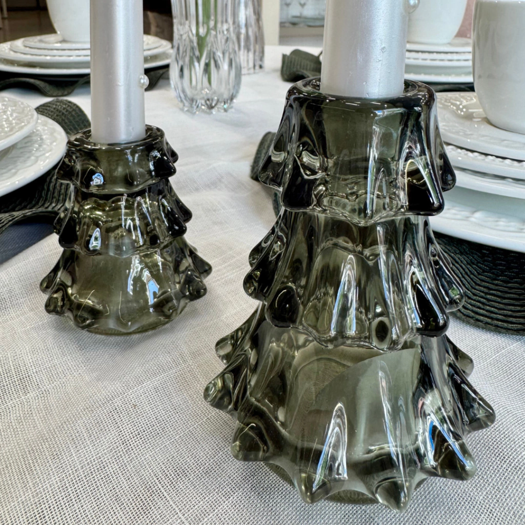 Com um vibrante tom de verde e delicadamente cravejado, este porta-velas em tamanho P (7,5x7,5cm) é a peça perfeita para adicionar um brilho especial à sua decoração festiva. O design de árvore clássica, combinado com o efeito cravejado, cria um jogo de luz fascinante, espalhando reflexos cintilantes por todo o ambiente.