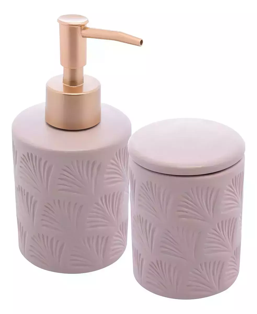 O Conjunto Leaf Nude traz dois itens essenciais para o banheiro: porta-escova e dispenser para sabonete líquido. Feitos em cerâmica com acabamento delicado e relevo em forma de folhas, adicionam charme e suavidade ao ambiente.