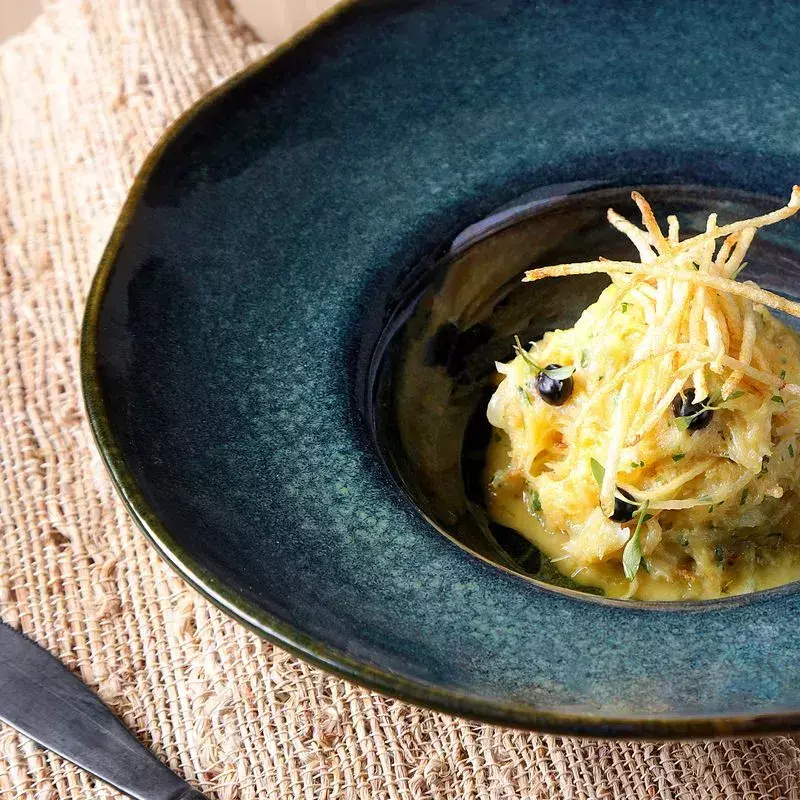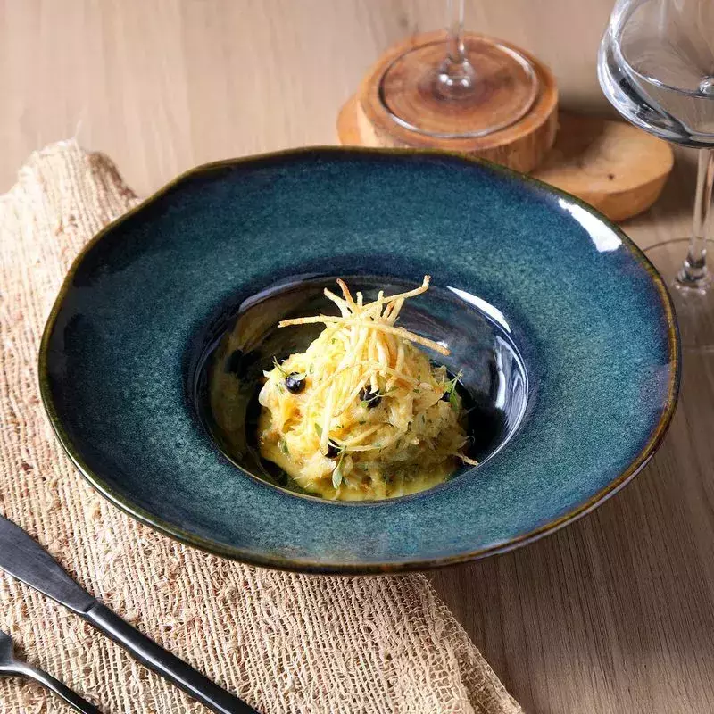 O Conjunto de Pratos de Massa Orgânico Oceano traz a beleza do azul profundo e a autenticidade do acabamento artesanal. Produzidos em stoneware de alta resistência, cada prato recebe variações sutis de cor e textura que tornam o conjunto exclusivo e cheio de personalidade.