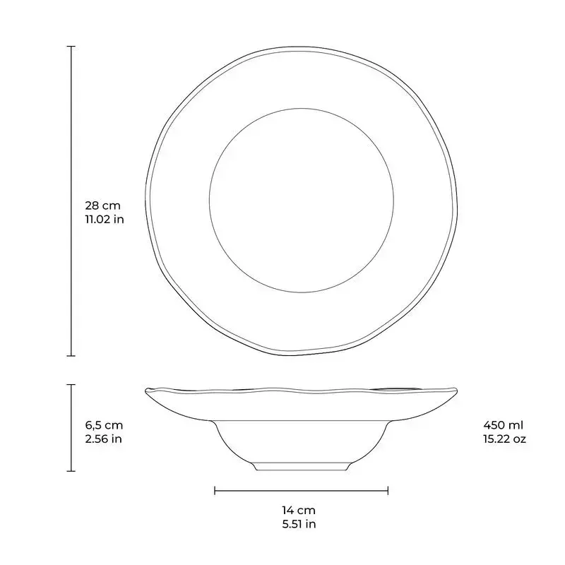 Com bordas altas e capacidade de 450ml, são ideais para servir massas, risotos e pratos elaborados com praticidade e sofisticação. A cor oceano confere elegância atemporal à mesa, transformando cada refeição em um momento especial.