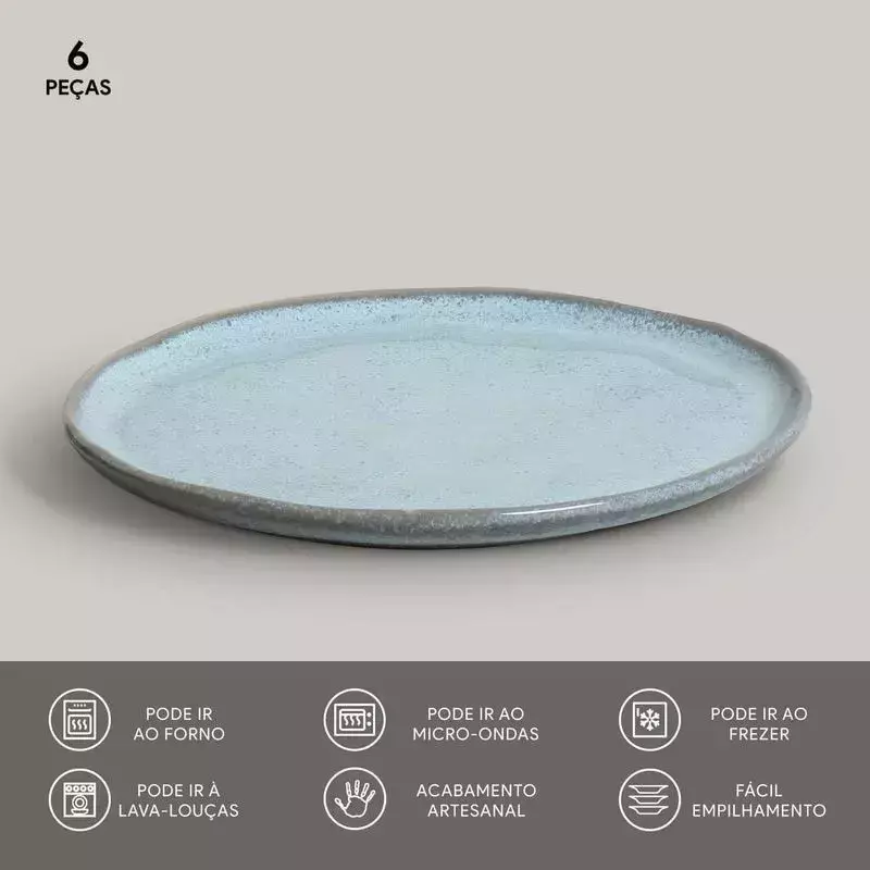 O Conjunto de Pratos de Sobremesa Bio Breeze une delicadeza, autenticidade e sofisticação em peças que encantam em qualquer ocasião. Produzidos em stoneware de alta resistência, cada prato recebe acabamento artesanal que garante variações sutis de cor e textura, transformando o conjunto em algo único e exclusivo.