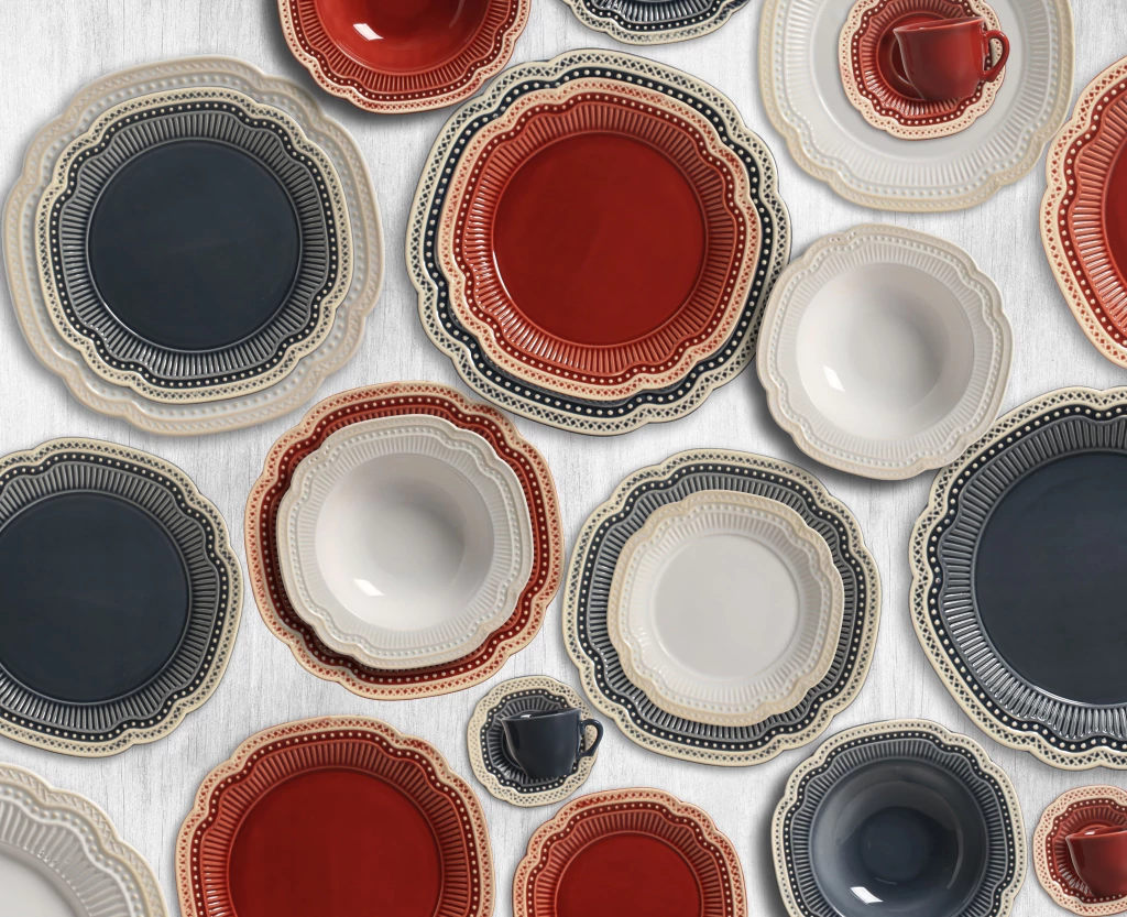O Conjunto de Pratos Rasos Maia traz a intensidade do vermelho ferrugem em uma proposta clássica e sofisticada para a mesa posta. Com acabamento esmaltado e leves variações de cor, cada peça carrega o charme artesanal, tornando cada composição única. Ideal para o uso diário ou para ocasiões especiais, une resistência, elegância e versatilidade em um design atemporal.