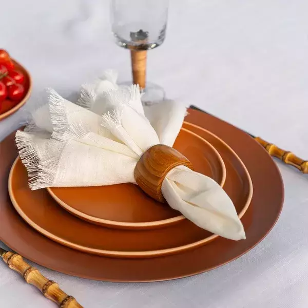 O Anel de Guardanapo Ollie é feito em madeira natural, com acabamento delicado e design versátil que combina com diferentes estilos de decoração. Ideal para organizar guardanapos de tecido com charme e praticidade, ele adiciona um ar acolhedor à composição da mesa.