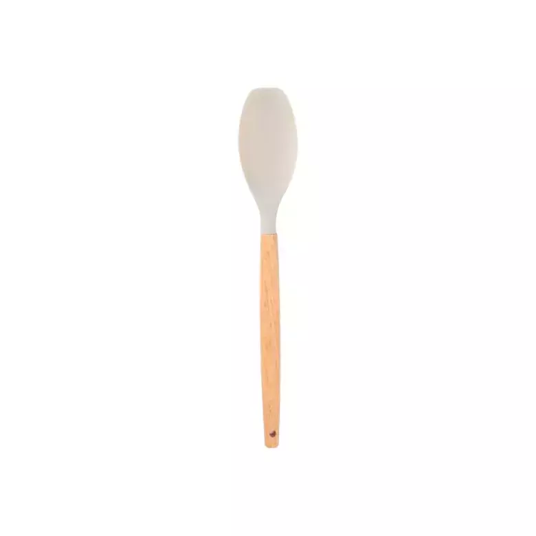 Prática, delicada com as superfícies e cheia de charme, essa espátula redonda é perfeita para preparar receitas doces ou salgadas com mais leveza e segurança. A cabeça em silicone flexível desliza com facilidade sem riscar panelas, enquanto o cabo de madeira natural traz firmeza e um toque decorativo acolhedor à sua rotina.