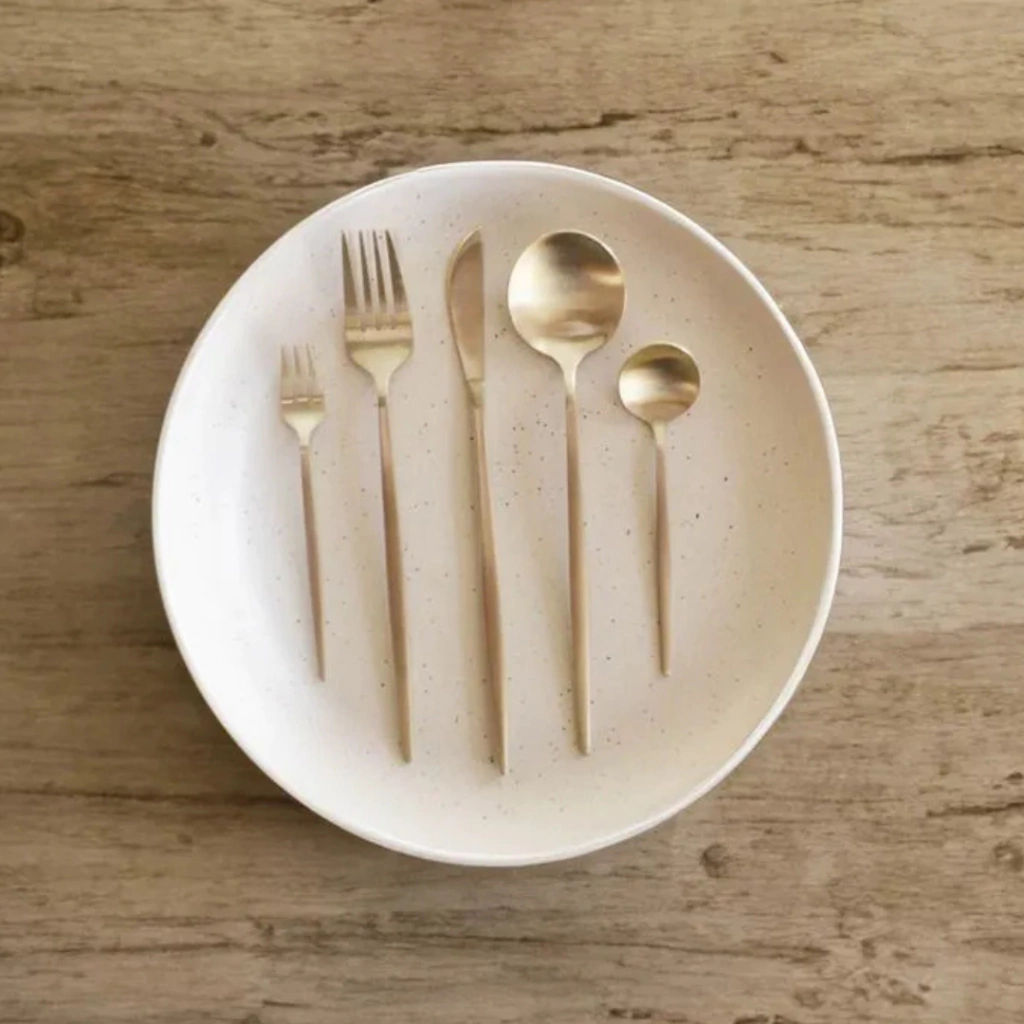 O Faqueiro em Aço Inox Berlin com 30 Peças da marca Kenya, representa muito mais do que um simples conjunto de talheres. Ele é uma declaração de estilo, qualidade e funcionalidade, que irá elevar a experiência de refeição em seu lar a novos patamares de sofisticação e satisfação. Especificações do Produto: • Design moderno diferenciado • Perfeito para o dia a dia ou ocasiões especiais • Peças projetadas com formato confortável para proporcionar um manuseio preciso e seguro • Facilidade de limpeza, o produto pode ir a lava louças Ficha Técnica: • Código: 4083210002 • Marca: Kenya • Material: Aço Inox • Cor: Dourado • Peso: 820g • Conteúdo da Embalagem: 6 Garfos, 6 Colheres de Sopa, 6 Facas, 6 Garfos de Sobremesa e 6 Colheres de Sobremesa • Dimensões da Embalagem: 25,8cm x 18,5cm x 6,2cm (AxLxP) • Garantia: 3 Meses (Contra defeito de fabricação)