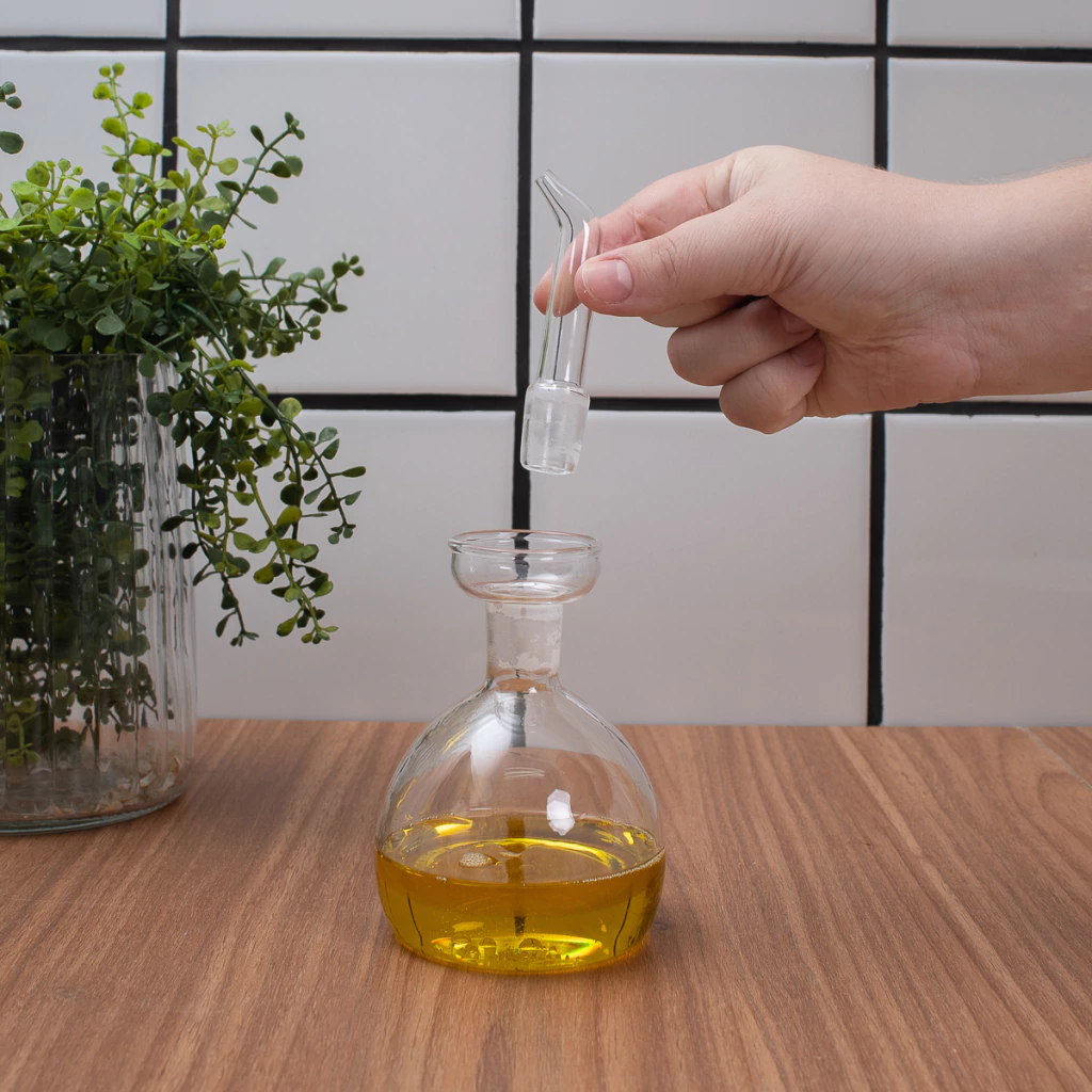 Com design arredondado e acabamento delicado, o galheteiro de vidro borossilicato 250ml é perfeito para servir azeites, vinagres e molhos com precisão e elegância. O bico dosador com coletor foi pensado para manter o vidro sempre limpo, sem respingos ou escorrimentos na mesa ou bancada.