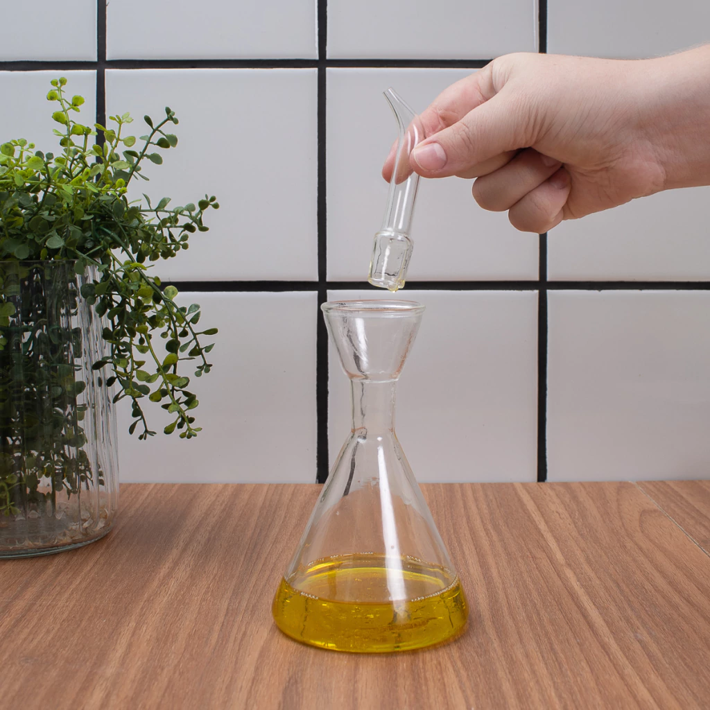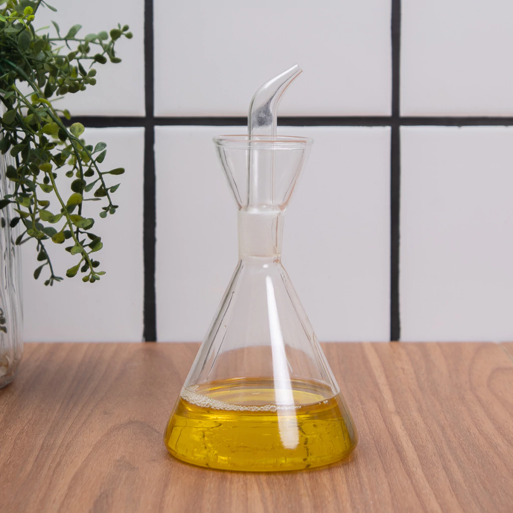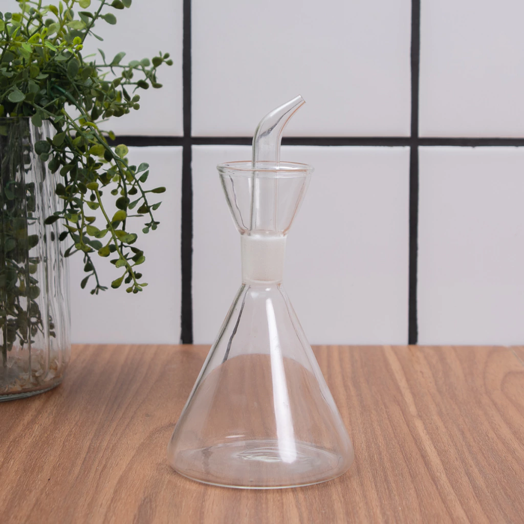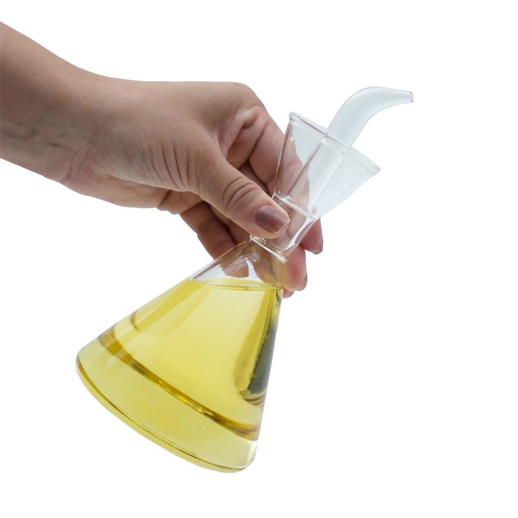 Funcional e elegante, o galheteiro triangular de vidro borossilicato é ideal para compor sua mesa ou bancada com charme e praticidade. Com bico dosador e coletor inteligente, evita respingos e mantém tudo limpo — perfeito para servir azeites, vinagres ou molhos com precisão.