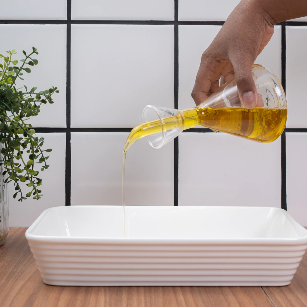 Feito em vidro borossilicato, é higiênico, resistente e não retém gosto ou cheiro. Um item essencial para quem valoriza funcionalidade e sofisticação nos detalhes da cozinha.