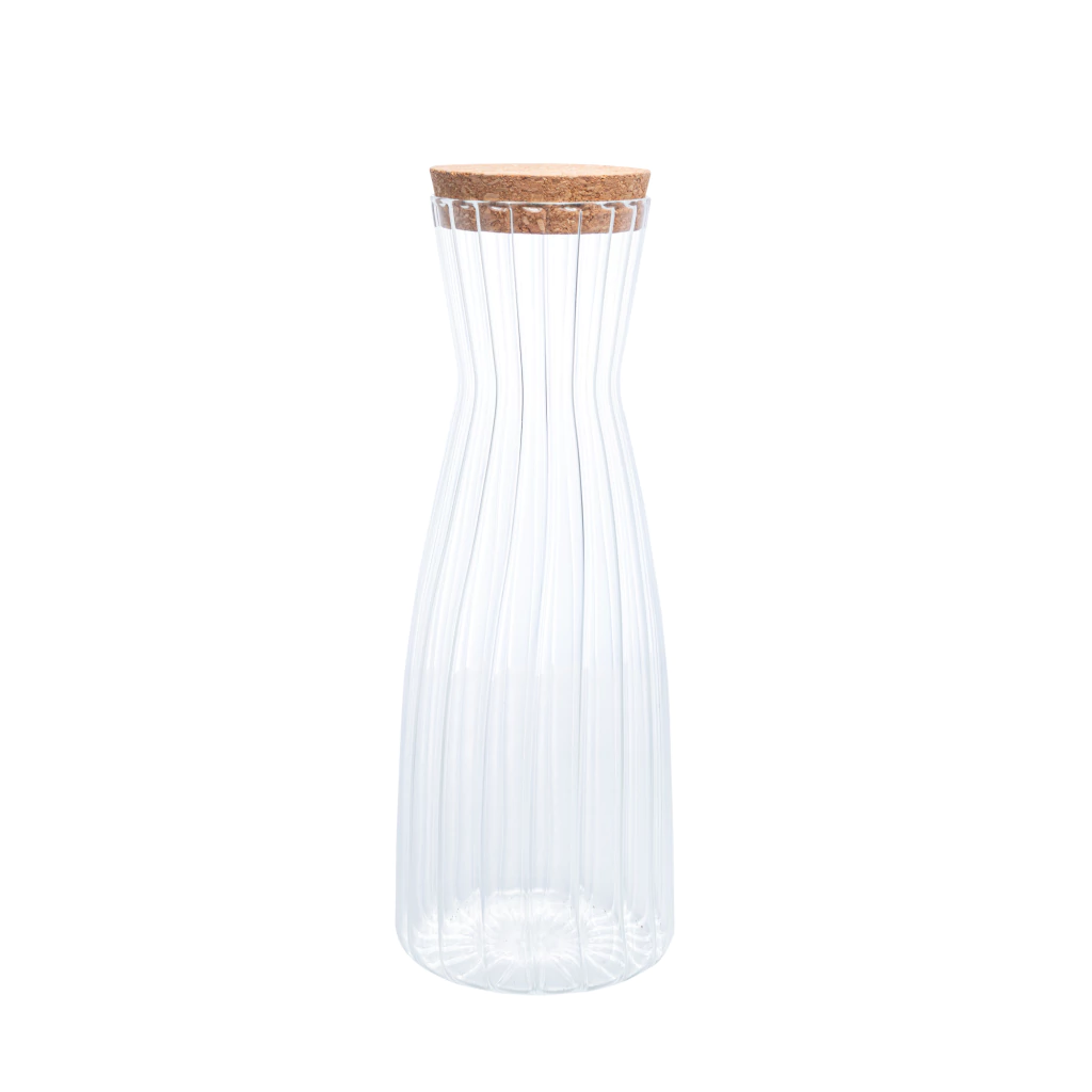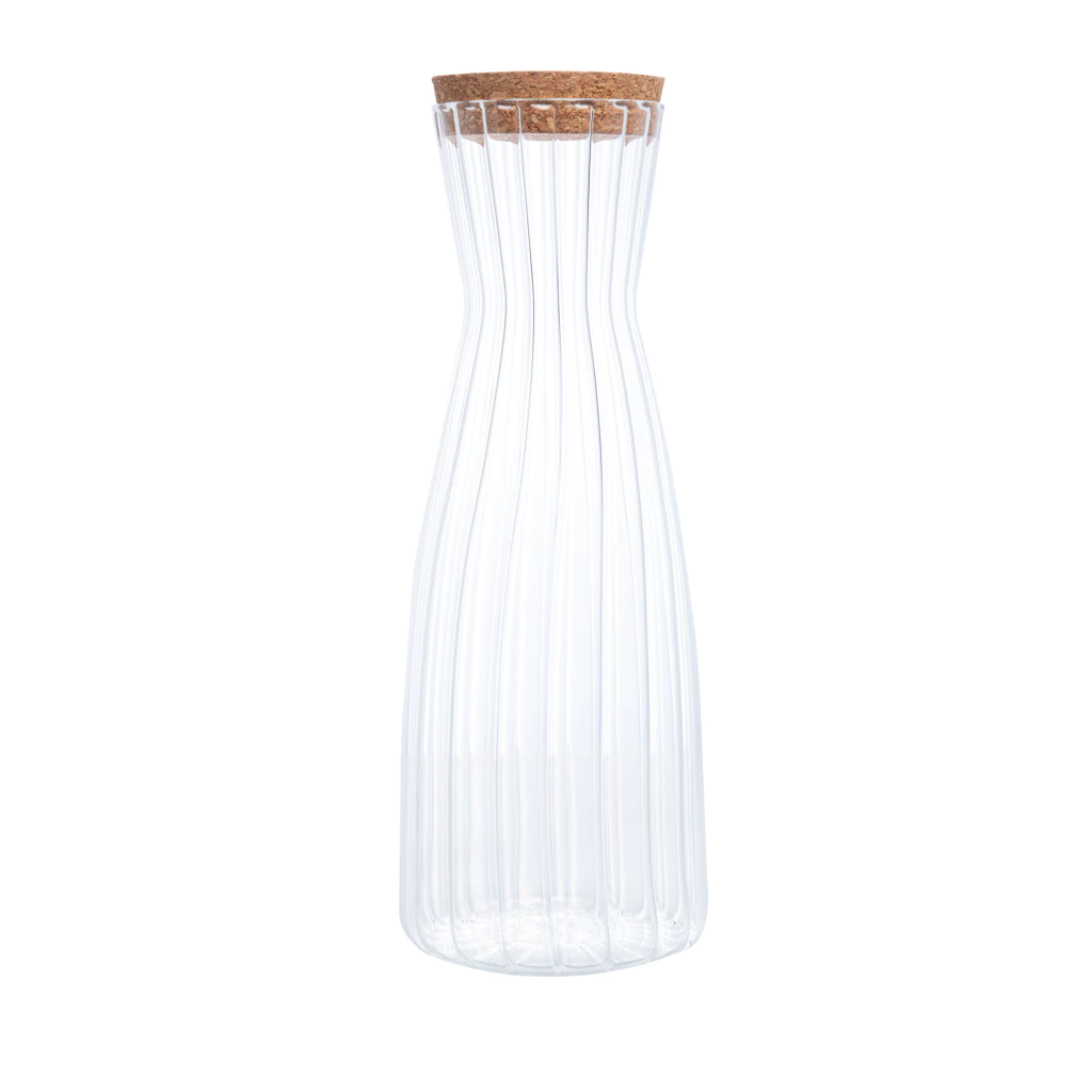 O destaque está na tampa de rolha em cortiça, que proporciona vedação completa, preservando o sabor e o frescor por mais tempo. O interior canelado adiciona um toque diferenciado de sofisticação, tornando a peça ideal para servir água aromatizada, sucos, chás ou outras bebidas com charme e elegância.
