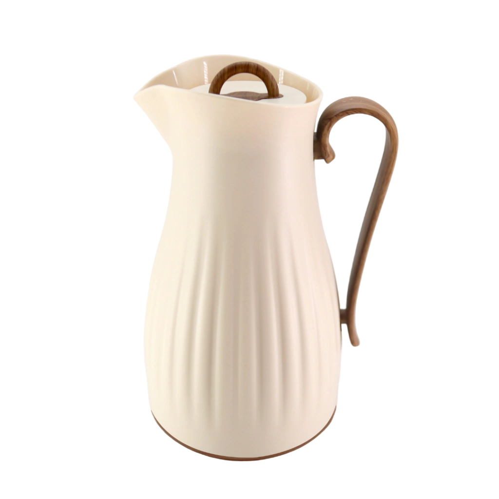 Com design sofisticado e inspirado na harmonia da natureza, a Garrafa Térmica une praticidade e estilo à sua mesa. Seu corpo em tom bege suave traz leveza e elegância, enquanto a alça e a tampa com acabamento amadeirado adicionam um charme acolhedor e contemporâneo.