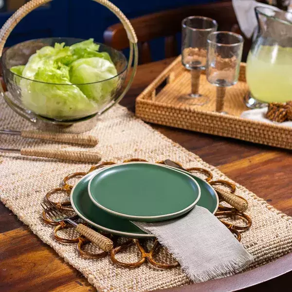 O Jogo Americano Solar – Rattan Palha é perfeito para quem busca compor mesas elegantes com um toque natural. Feito com materiais sintéticos que imitam rattan e bambu, ele combina charme rústico com praticidade no uso diário.