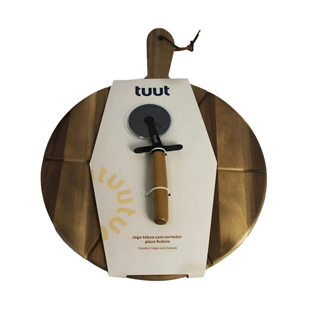 Com design funcional, a tábua é ideal para servir pizzas, tortas ou massas de forma charmosa e organizada. O cortador metálico incluso garante cortes precisos e práticos, tornando o momento de servir ainda mais especial.