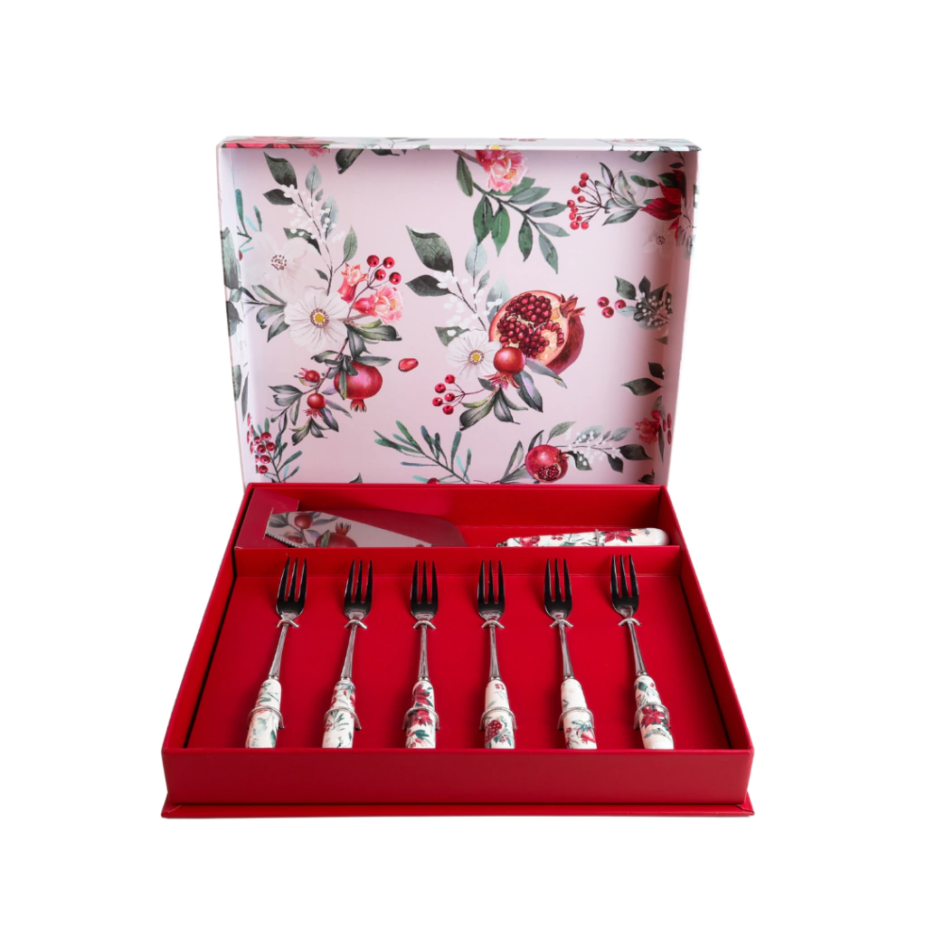 Conteúdo: 1 pá para bolo + 6 garfos (7 peças)