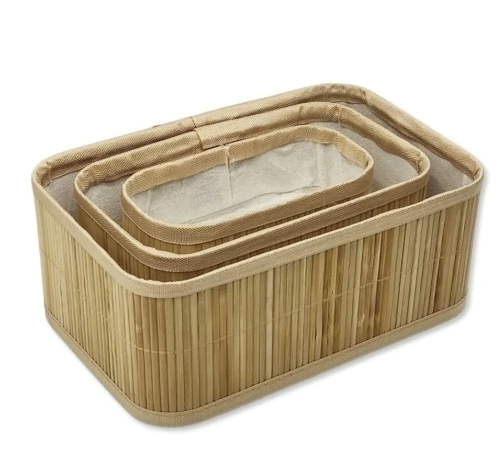 O Kit com 3 Cestos Organizadores em Bambu é a solução ideal para manter cada ambiente da casa em ordem com um toque natural e sofisticado. Perfeitos para quartos, banheiros, cozinhas e lavanderias, os cestos acomodam pequenos objetos com charme, contribuindo para um lar mais leve e acolhedor.