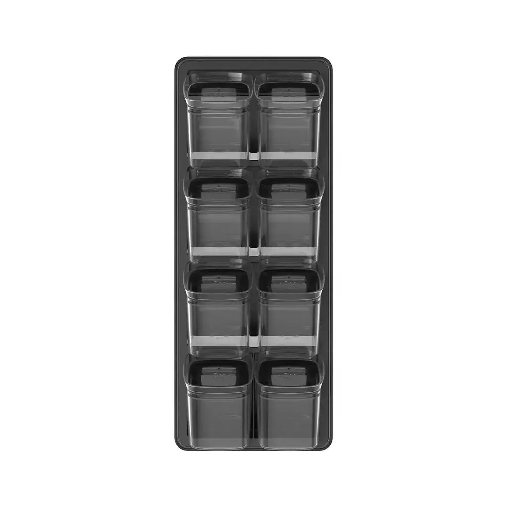 Organização prática e sofisticada para a sua cozinha. O Organizador de Temperos foi desenvolvido para otimizar o espaço das gavetas e manter seus condimentos sempre à mão. Com inclinação de 25°, permite perfeita visualização e acesso aos potes, além de oferecer design modular que possibilita diferentes combinações conforme a sua necessidade.