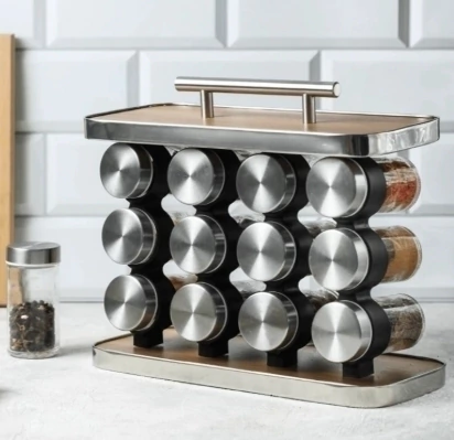 Porta-Tempero Homeland – Aço Inox com 12 Potes de Vidro