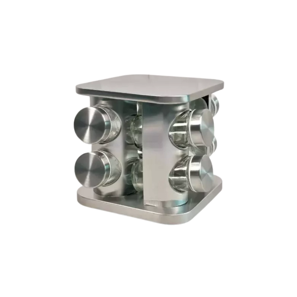 Porta-Tempero Homeland – Aço Inox com 12 Potes de Vidro