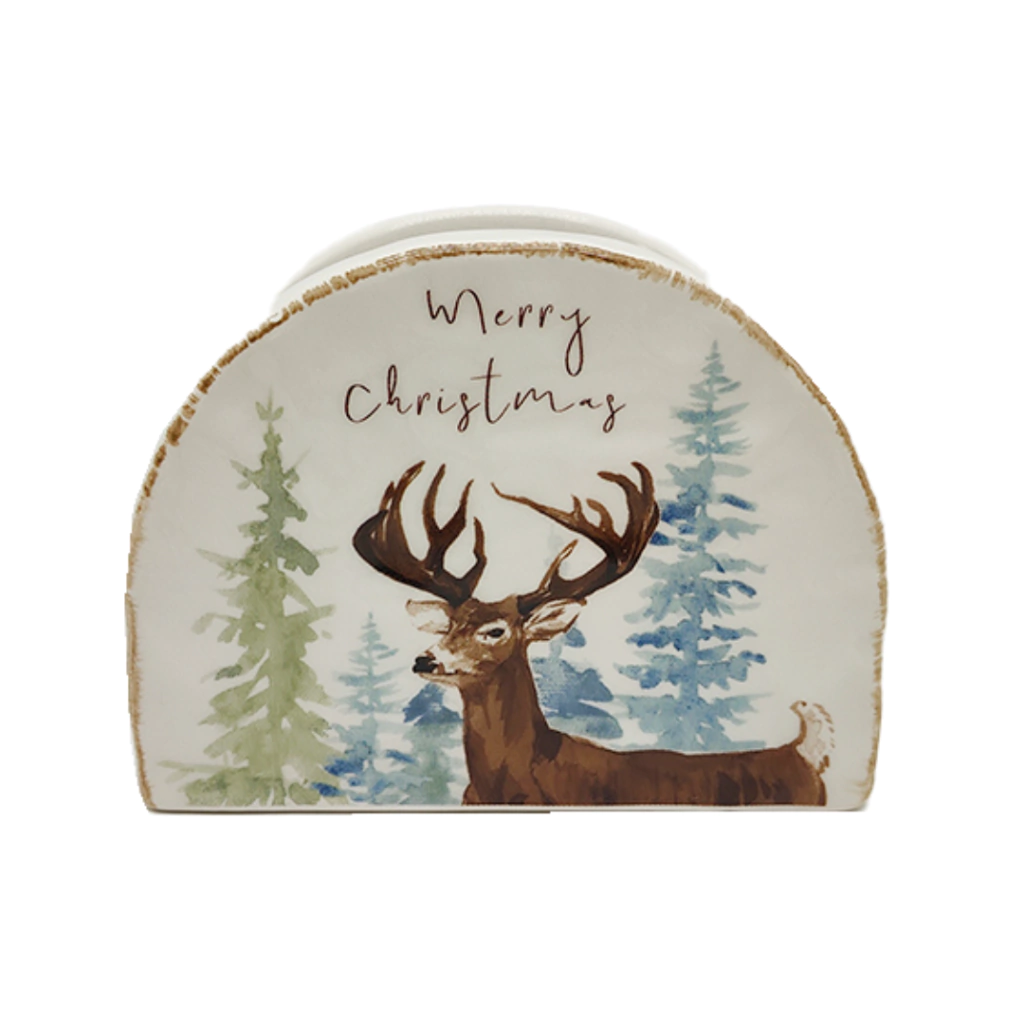 Adicione um toque natalino e acolhedor à sua mesa com o Porta-Guardanapo Dolomita Alce. Produzido em cerâmica dolomita de alta qualidade, traz delicada estampa com pinheiros e alce, inspirada no clima encantador das festas de fim de ano.