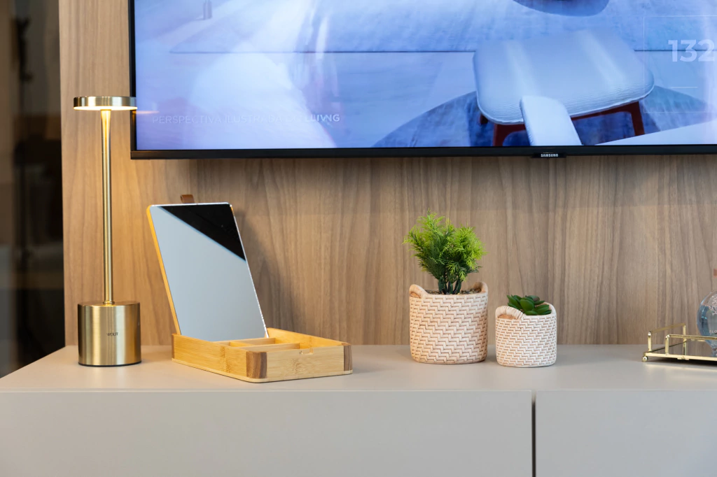 O espelho integrado na tampa adiciona funcionalidade ao design, tornando mais fácil visualizar e escolher suas peças no dia a dia. Compacto e elegante, acomoda anéis, brincos, colares e pequenos acessórios com praticidade, mantendo tudo sempre à mão.