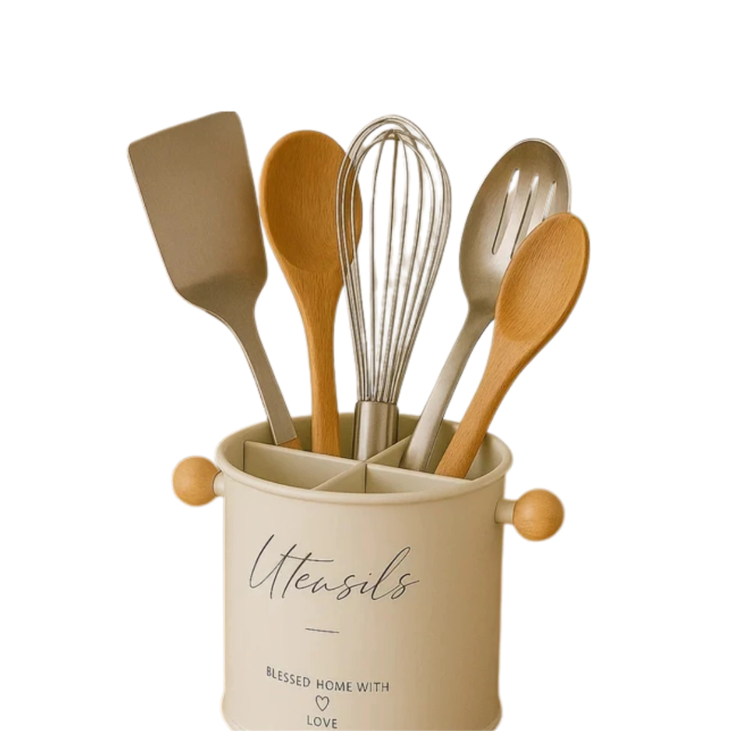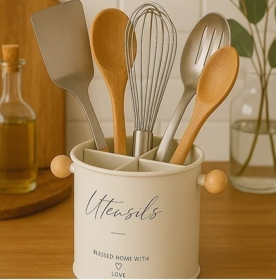 Organização prática com toque industrial. O Porta Utensílios Ordinários é feito em metal resistente, com divisórias internas que facilitam a separação de talheres e utensílios de dia a dia. Ideal para bancadas de cozinha ou áreas gourmet, além de funcionalidade e estilo com acabamento moderno.