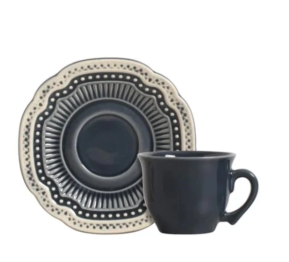 A Xícara com Pires Maia em cerâmica azul jeans traduz elegância e modernidade em um design clássico. Sua tonalidade azul marinho acrescenta sofisticação à mesa posta e torna os momentos de pausa ainda mais especiais. Ideal para servir chás e infusões, combina resistência, beleza e acabamento esmaltado com leves variações de cor que tornam cada peça única.